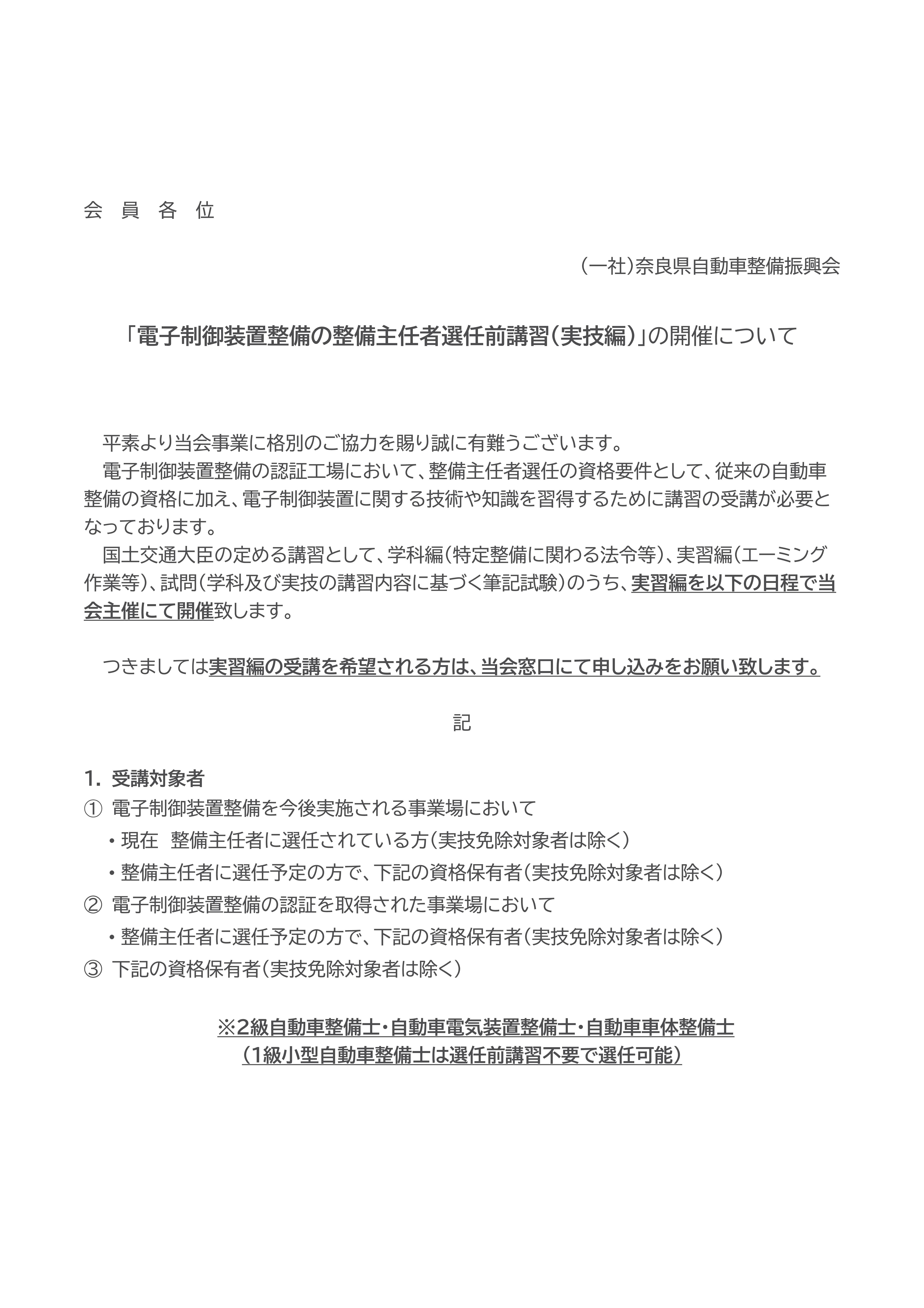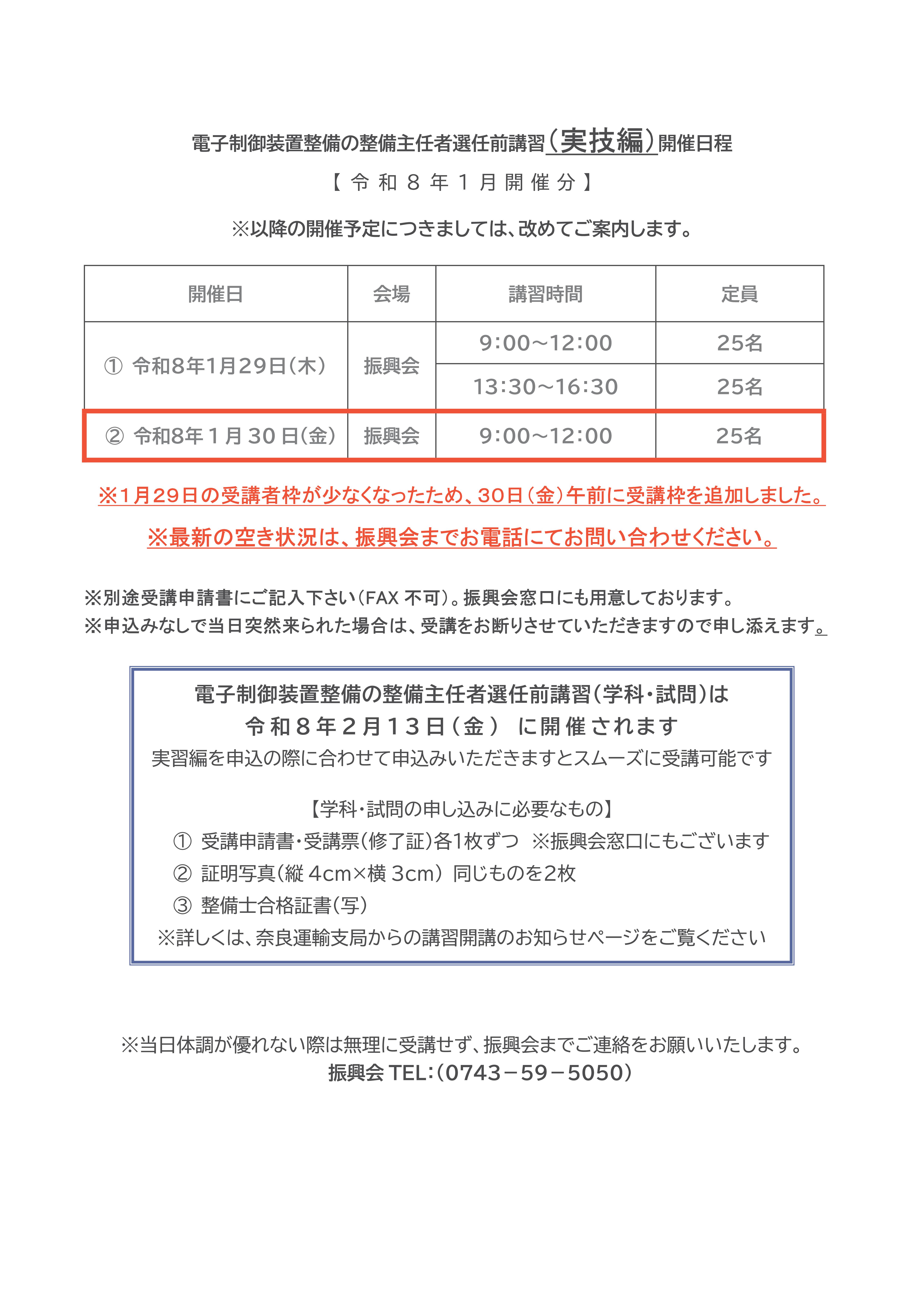 トップページ » 新着情報 » 【令和8年1月実施】電子制御装置の整備主任者選任前講習(実習編)の受講者募集